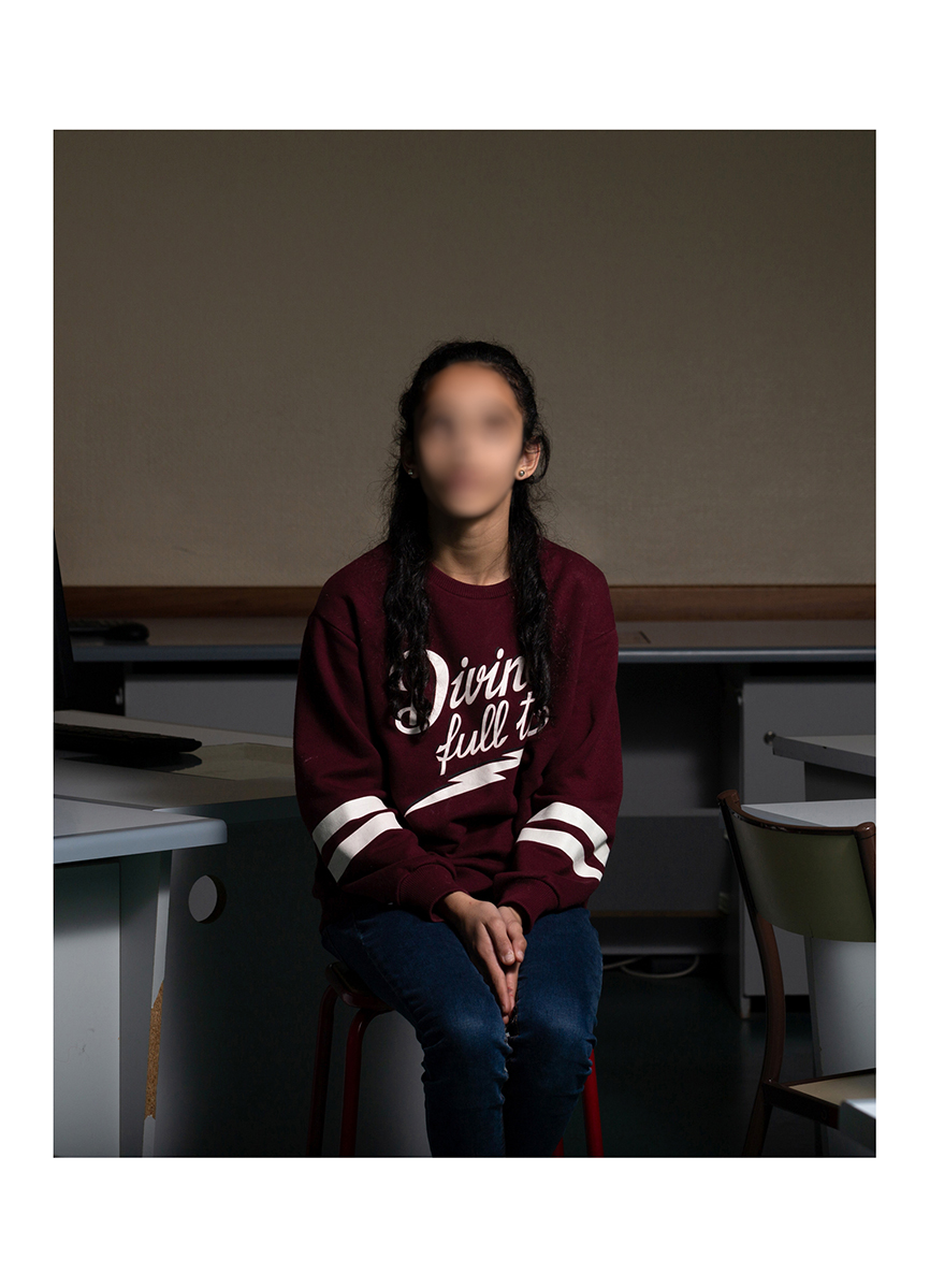 « J’envisage la photographie scolaire comme la conjugaison d’une photographie à l’iconographie classique et d’un regard plus contemporain au sein duquel l’éclairage se veut plus créatif, en dehors du traditionnel schéma composé de deux sources qui éclairent uniformément l’enfant photographié. »